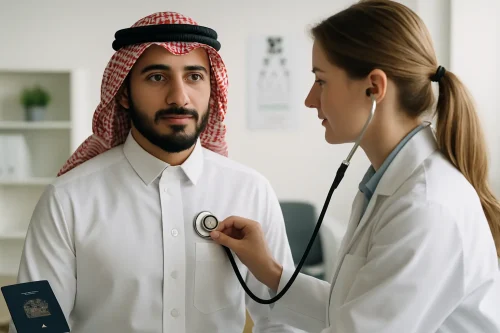 Saudi work visas commonly require a medical examination and a medical report in a specified format. This is not a general GP note. The report must cover the required tests and be issued by a clinic that produces reports acceptable for Saudi submission.
